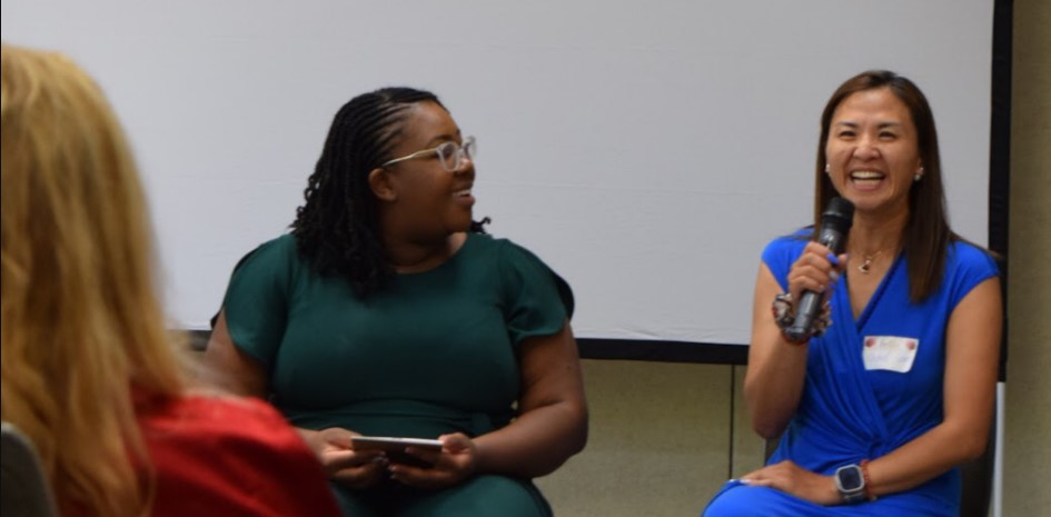Panel 2 discussed the leadership skills and perspectives mothers gain in the workplace and how these influence family relationships, children’s development, and overall well-being.